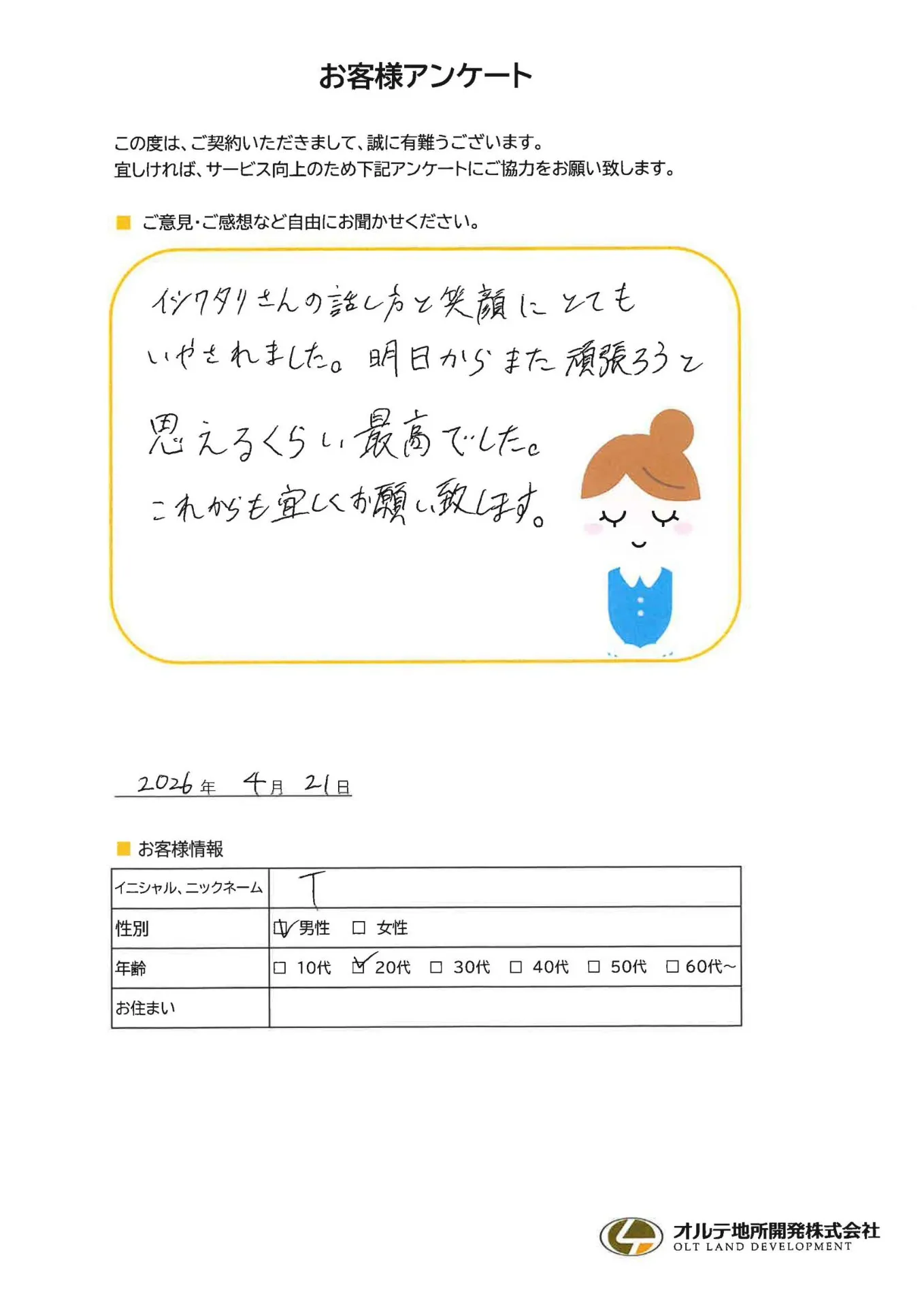 お客様アンケートにご回答いただきました!