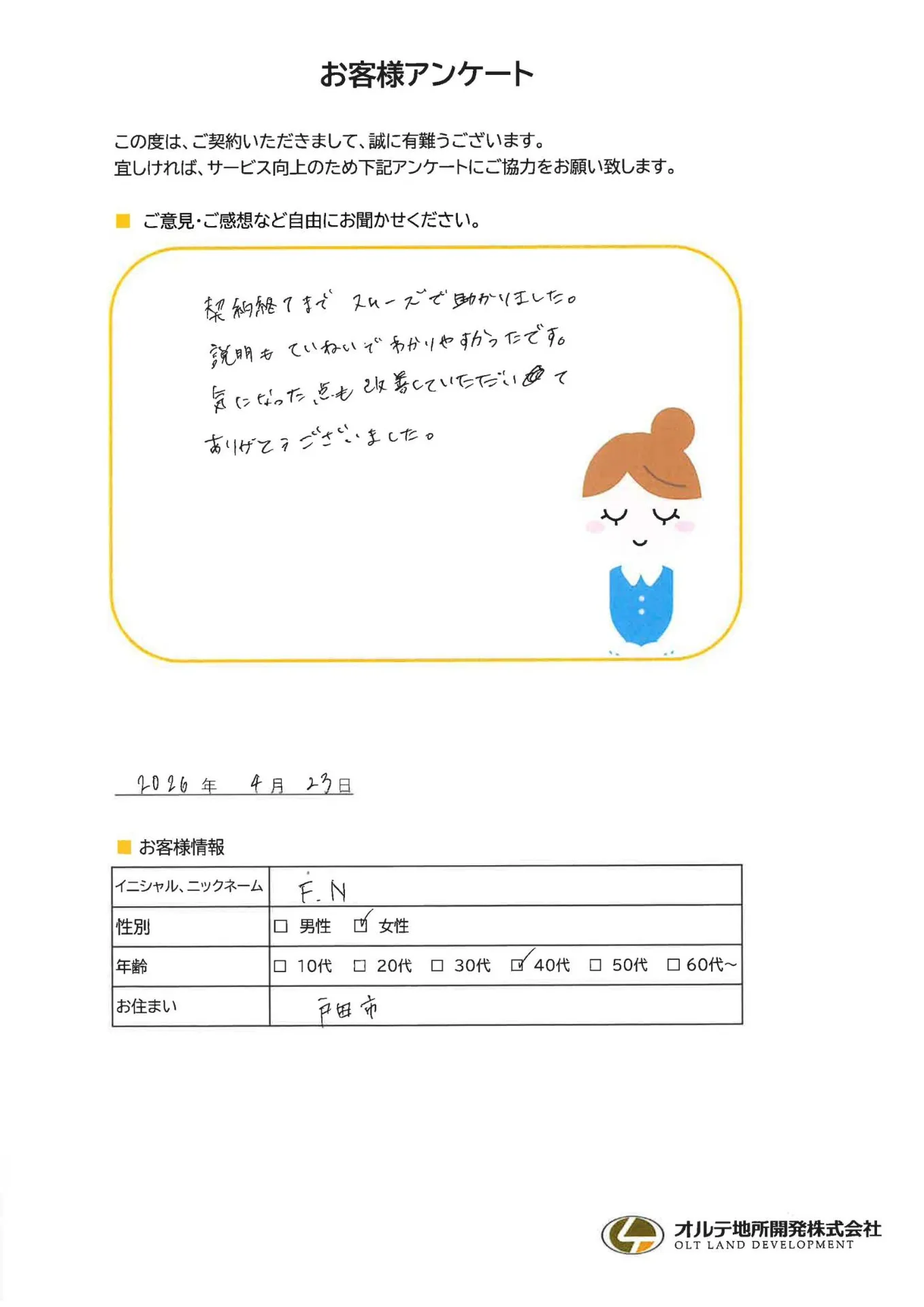 お客様アンケートにご回答いただきました!